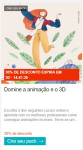 E não é só ser descontraído. No caso abaixo, o CTA usado pelo site Doméstika, uma plataforma de cursos voltados para a área digital e criativa, complementa a mensagem e incentiva o usuário de forma clara e simples: garantir um pacote de cursos.